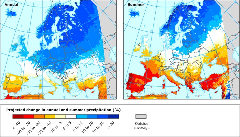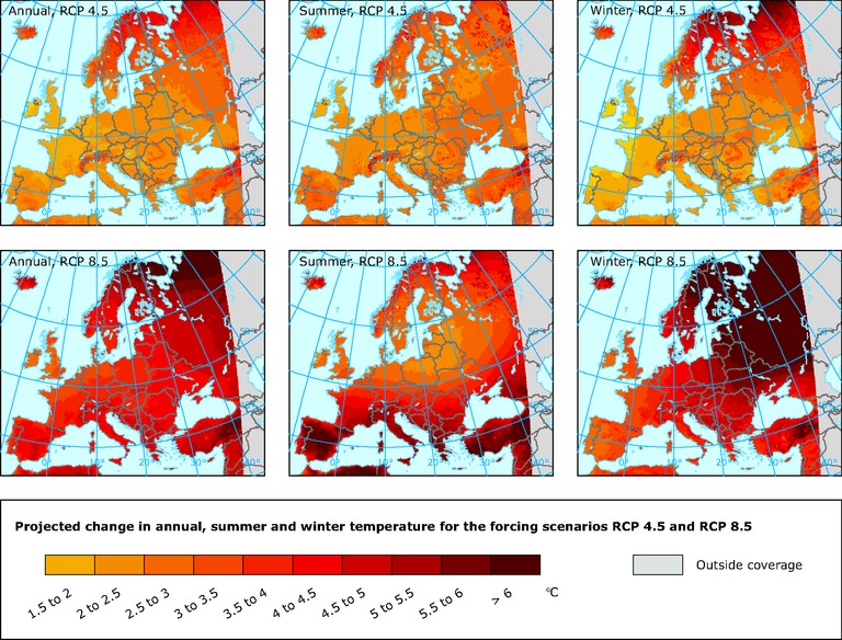 Introduction to climate change Climate Change is the term used to describe long term changes in weather patterns. Such changes have occured throughout the period that life has existed on this planet. It is well documented that long-term cycles influenced by irregularities in the earth's orbit and rotation cause distinctive warm and cold phases of thousands of years in duration. The last intense cold spell, usually referred to as The Ice Age (though there were many other Ice Ages prior to this one) , ended around twelve thousand years ago. Since then, there have been many smaller climate fluctuations, many of them still big enough to have major impacts on human civilisation. A warm period of approximately three centuries during the Middle Ages assisted the development of agriculture across many Northern European countries. The colder spell that followed - often referred to as the Little Ice Age - reined in agricultural expansion and saw tillage replaced by livestock farming (and sometimes orchards) in many places. More recently still, roughly since the end of the nineteenth century, global temperatures have begun to rise. Since the mid1980s, the rate of temperature increase has steepened significantly, to around 0.2°C per decade. Although this does not sound like much, data from ice cores, tree rings and other sources suggests that such a rapid rise in global temperature has not occured at any point in the last ten thousand years, and possibly not for far longer. If this increase continues, as climate science predicts - the earth will soon be warmer than at any time for thousands of years. This time is different While historical changes in climate have been almost entirely due to natural cycles, the changes that have occured during the latter part of the industrial era - particularly those of the last three decades - are different. Science has shown that the recent increases in global temperature are anthropogenic, in other words directly linked to human activities. The temperature increases are caused by rising levels of greenhouse gases in the atmosphere. These gases are called greenhouse gases because they cause more of the sun's heat to be trapped in the atmosphere, in the same manner as glass traps heat inside a greenhouse. And these additional greenhouse gases are the result of human activities such as cutting down forests, livestock farming and the of burning fossil fuels (oil, gas and coal). The principal greenhouse gas is carbon dioxide and is released into the atmosphere mainly by burning fossil fuels (oil, gas and coal). Methane - released by livestock and also by disturbance of wet soils - is the second most significant greenhouse gas. Although some people - particularly those with vested interests in the fossil fuel industry or with lifestyles that might be impacted upon by any attempt to rein in fossil fuel use - have denied that recent global warming is anything to do with human actvities, the fact is that the overwhelming majority of the world's climate science community believe global warming is caused by human activities and their findings, published by the body known as the Intergovernmental Panel on Climate Change (IPCC) have been endorsed by the governments of every single member state of the United Nations. Owing to the on-going effect of greenhouse gases already in the atmosphere, even if all the anthropogenic emissions were somehow halted tomorrow, global temperatures would continue to rise for a number of decades. Unfortunately however, the rate of global greenhouse gas emissions continues to rise, and with almost every country in the world increasing its emissions year on year, no change in this trend is likely (or even possible) in the near future. Meanwhile, global temperatures are set to continue rising for many decades, and possibly into the next century. General Outlook (Europe) The official EU position: "Annual average land temperatures over Europe [over the remainder of this century] are projected to continue increasing by more than the global average temperature. The largest temperature increases are projected over eastern and northern Europe in winter, and over southern Europe in summer. Annual precipitation is generally projected to increase in northern Europe and to decrease in southern Europe, thereby enhancing the differences between currently wet regions and currently dry regions. The intensity and frequency of extreme weather events is also projected to increase in many regions, and sea-level rise is projected to accelerate significantly." Source: www.eea.europa.eu/soer-2015/europe/climate-change-impacts-and-adaptation (see link below) Interpretation: the scenario RCP 4.5 is predicated on significant reductions in anthropogenic greenhouse gas emissions. The RCP 8.5 scenario is predicated upon existing policies on global warming, and the continuation of current trends in energy use. Projected changes in precipitation for Scenario RCP 8.5. The combination of reduced summer precipitation in tandem with increased evapotranspiration arising from higher temperatures will have massive implications for food production. More Information on these scenarios