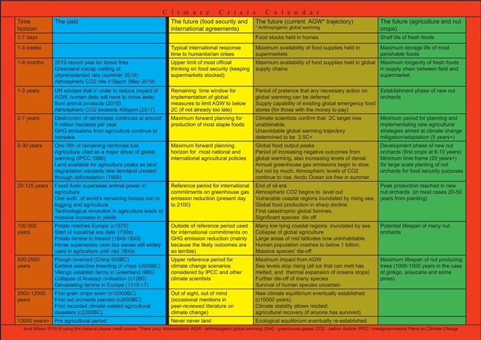 Fruit and Nut to publish alternative climate change action plan During July, all time temperature records were shattered across a swathe of European countries, in some cases by several degrees. Global temperatures for July were 1.2C above the pre-industrial baseline temperature, scariliy close to the tipping point of 1.5C (which earlier projections showed would not occur for at least another 50 years). Meanwhile, Arctic sea ice is at an all time low for the time of year, icemelt on the Greenland icecap during July was greater than for the whole of last year, and unprecedented numbers of forest fires rage across Russia, Canada and Alaska. In Siberia alone, 2.7 million hectares of forest are ablaze (roughly equivalent in area to Belgium). And this is only a tiny taste of what global warming will bring. The latest IPCC report states that it will be impossible to limit global warming to a safe level without massive change in land use and a paradigm shift in global food production towards vegetarian and vegan diets. “The consumption of healthy and sustainable diets, such as those based on coarse grains, pulses and vegetables, and nuts and seeds … presents major opportunities for reducing greenhouse gas emissions,” it states. In repost to the recent climate change deckchair rearranging exercise published by the Irish government (proposals that achieve zero reduction of Ireland's burgeoning agricultural greenhouse gas emissions), the nursery is to publish an alternative set of emission reduction proposals for Ireland, concentrating on reductions achievable in agriculture and forestry. In brief, this will require completely reconfiguring Irish agriculture, ending all imports of animal feed and perhaps reducing livestock production by 90 percent. At nursery level, the nursery plans to reduce its vehicle related emissions by 50 percent (on 2017 levels) by December 2020, then by a further 40 percent by 2025. The first target (which we are confident will easily be met) will be achieved largely by rationalising vehicle use. In 2017 total vehicle related emissions at the nursery amounted to approx 1 tonne CO2, which compares very favourably to the Irish household transport emissions average of nearly 4 tonnes per annum. Emissions from energy used at the nursery site for power supplies/heating totalled approximately 0.8 tonnes CO2 in 2017 (compared to average household heating/power related emissions of 3.3 tonnes per annum). The 2025 target will be met by phasing out the use of a nursery vehicle in favour of cargo bikes and trailers. Transport related emissions will then be mostly confined to long distance delivery of orders by post/carrier, and delivery of incoming orders by carrier to us (combined these amounted to approximately 35 percent of the nursery's transport emissions in 2017, though this has since dropped to around 20 percent). We estimate that changes in nursery practices - for example the phasing out of plastic plant pots - will reduce the volume/frequency of incoming deliveries by 50-70 percent. Further reductions in transport emissions will come from reducing plant imports in favour of plants raised by contract growers in Ireland. Emissions reductions in outgoing orders will be harder to achieve, but our relocation from Westport to near Charlestown places the nursery nearer to the majority of its customer base, and this alone will result in significantly reduced fuel expenditure in deliveries. Global warming and nuts It seems hardly a month goes by without another climate report confirming what we at Fruit and Nut have long been saying: that the world is now on a trajectory for dangerous climate change that will impact upon billions of people during the lifetime of people alive today. What is becoming more apparent too, is the unacceptable climate impact of livestock farming and of the meat-based diet. Put simply, there is no future for livestock farming as it is currently configured: the climate cost is simply too high. Change must come, both in diets and in the use of land. And among the most promising alternatives to livestock production are of course nuts, which give a protein and lipid yield per acre comparable to livestock farming but without any of the climate costs. The biggest handicap is not the weather or the soil, but lack of knowledge within the farming community. And with that in mind we urge all landowners everywhere to plant nut trees: if only a dozen trees for providing nuts for home use, in order to start building that knowledge base that will be so valuable in the future. We've been saying this for the last ten years, but now IS the time for agriculture to embrace nuts. It is truly shameful that the Irish government is still promoting and talking up livestock-based agriculture.